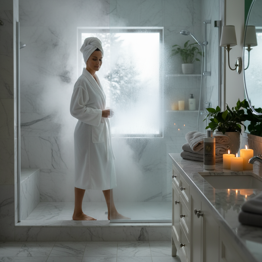 - In the shower: Apply a few drops to a sponge and gently massage onto the skin.